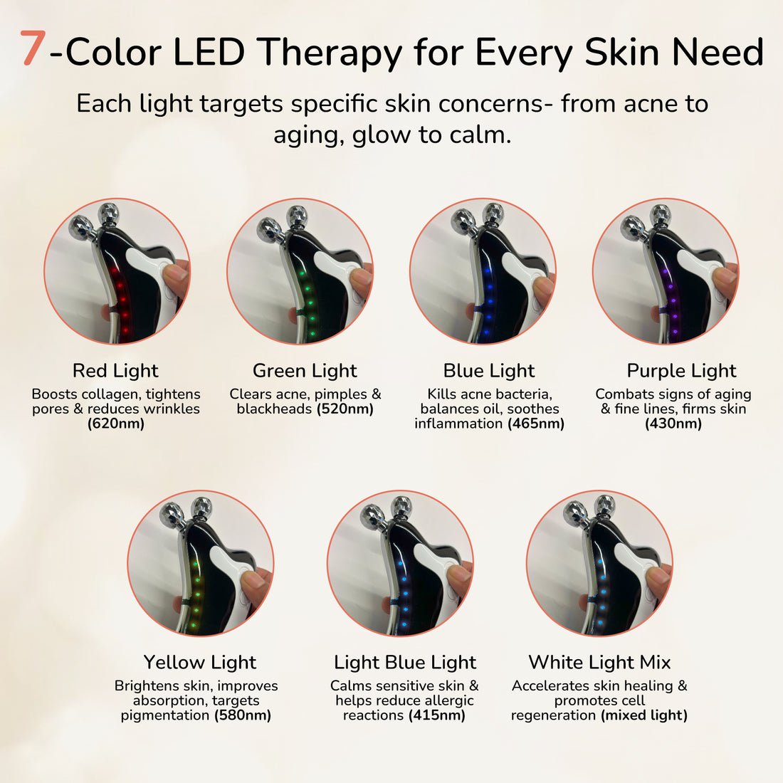 Each mode is designed to target different skin needs from lifting to brightening to soothing. Here’s what each one does: